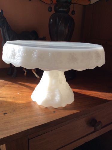 Title (ebay affiliate link): Anchor Hocking Vintage Grape White Milk Glass Pedestal Cake Stand Wedding