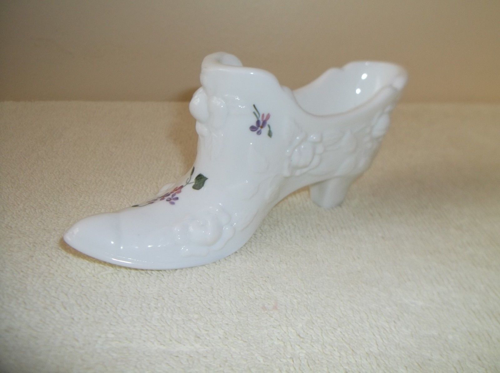 FENTON MILK GLASS SHOE ~ HAND PAINTED - SIGNED
