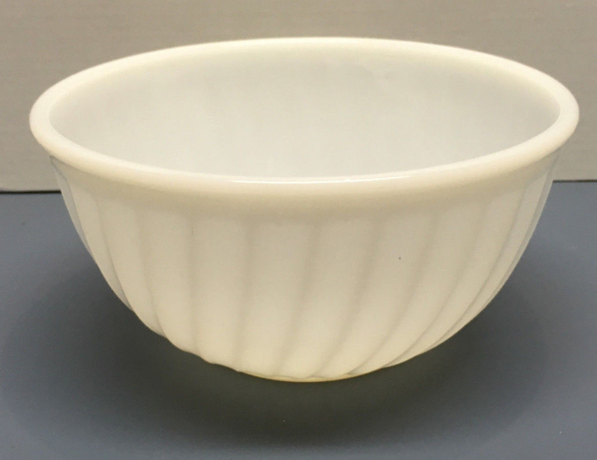 Title (ebay affiliate link): ANCHOR HOCKING FIRE KING WHITE MILK GLASS SWIRL MIXING BOWL APP 9" X 5" VG
