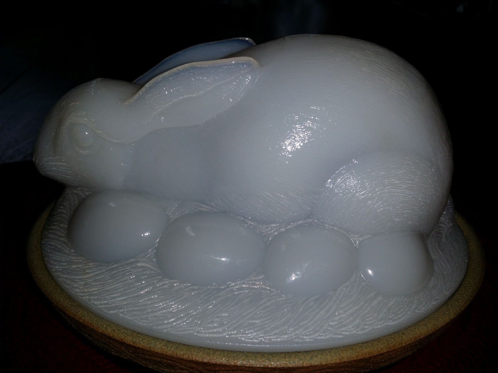 Fenton White Milk Glass Bunny On Eggs On Brown Basket