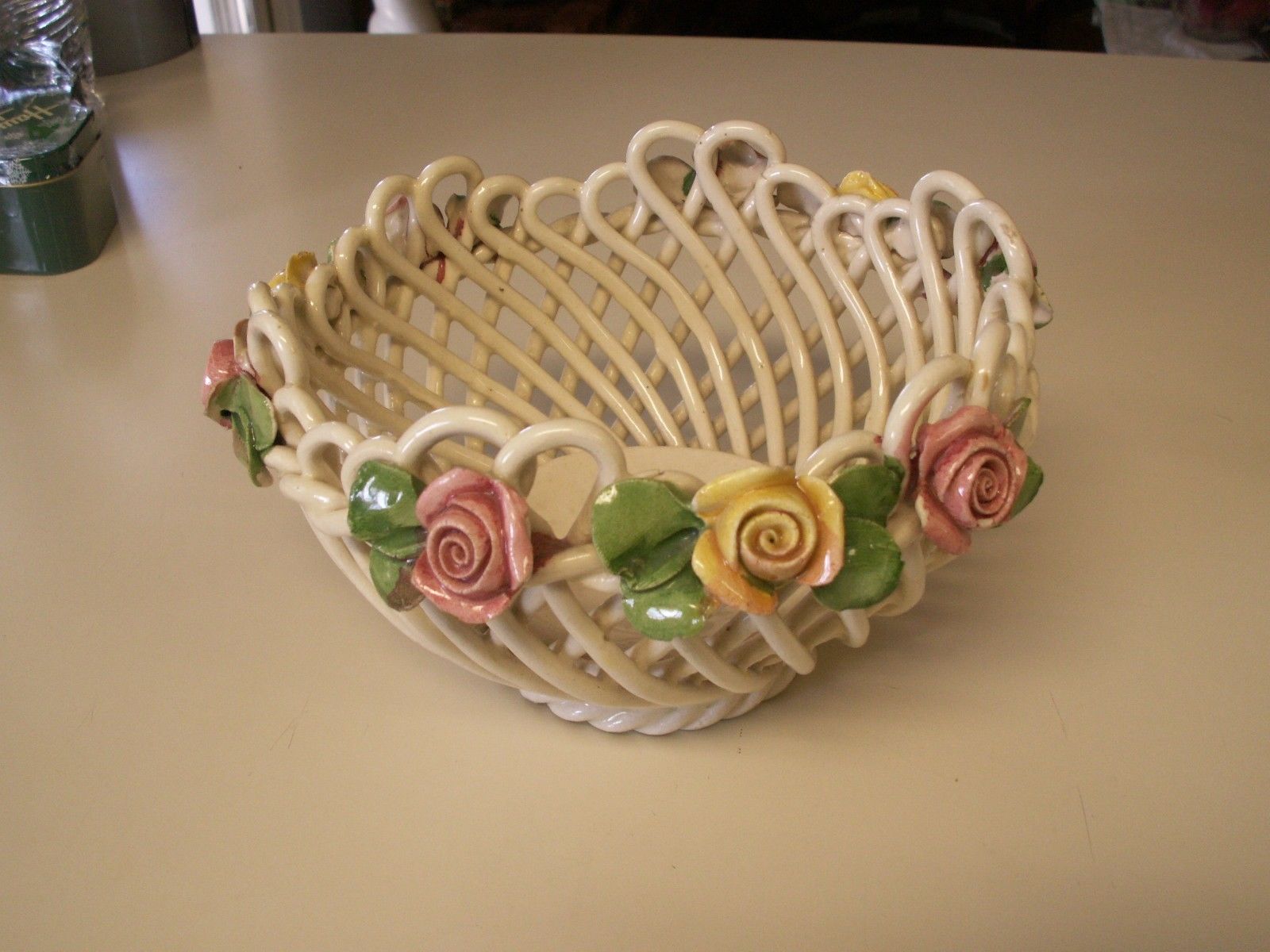 Title (ebay affiliate link): VINTAGE, VERY OLD, CAPODIMONTE LATTICE WORK PORCELAIN BOWL WITH APPLIED ROSES