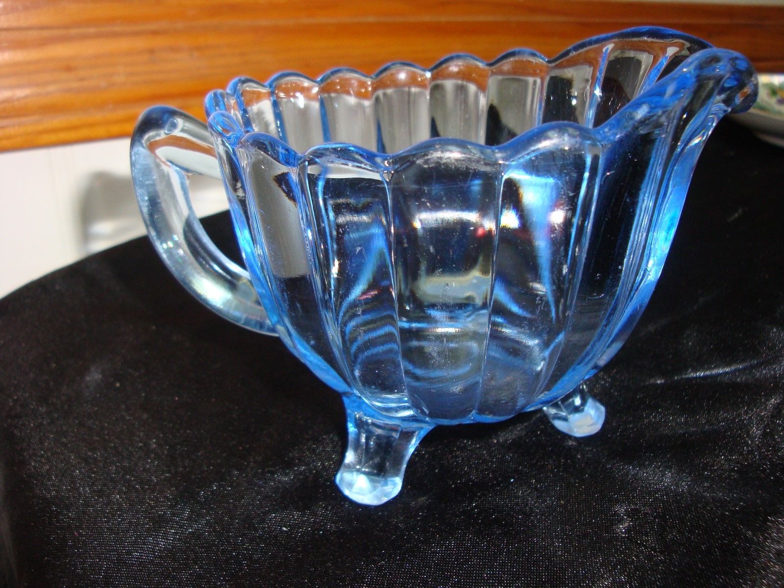 VINTAGE BLUE LUSTER GLASS FOOTED CREAMER