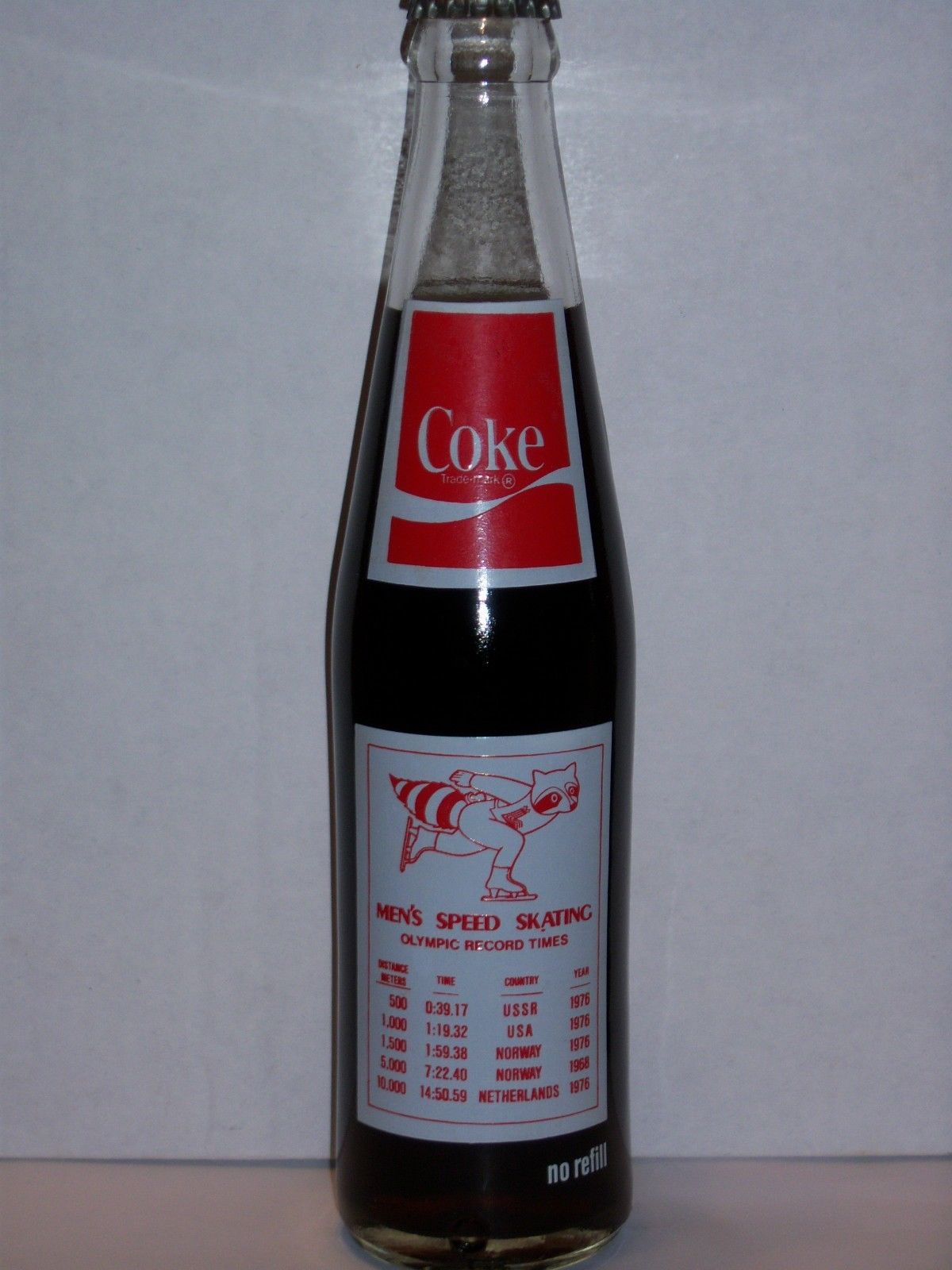 Title (ebay affiliate link): 10 OZ COCA COLA COMMEMORATIVE BOTTLE - 1980 WINTER OLYMPICS MEN''S SPEED SKATING
