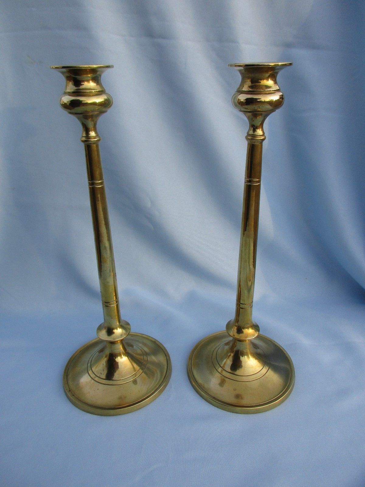 Title (ebay affiliate link): Pair Vintage Antique Arts & Crafts Brass Candlesticks Jarvie Nouveau Interest!