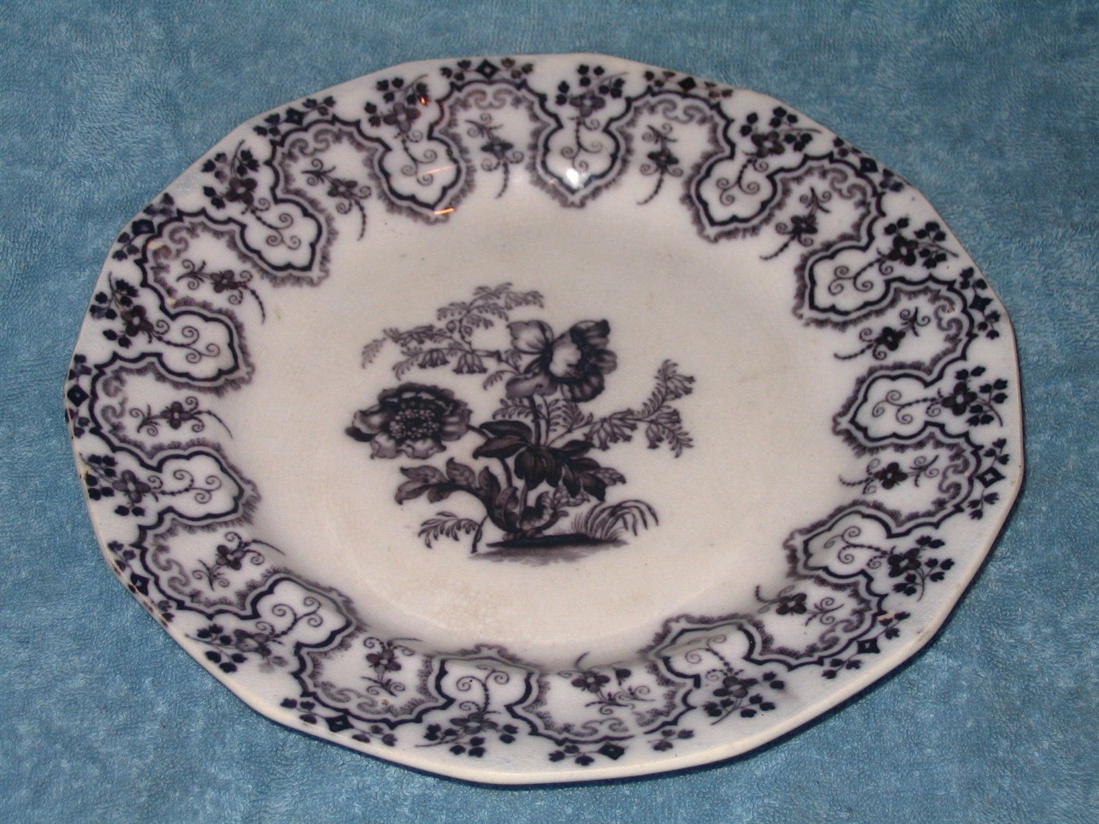 Title (ebay affiliate link): Antique STAFFORDSHIRE Plate Transferware Ironstone Marked Challinor Flow Black