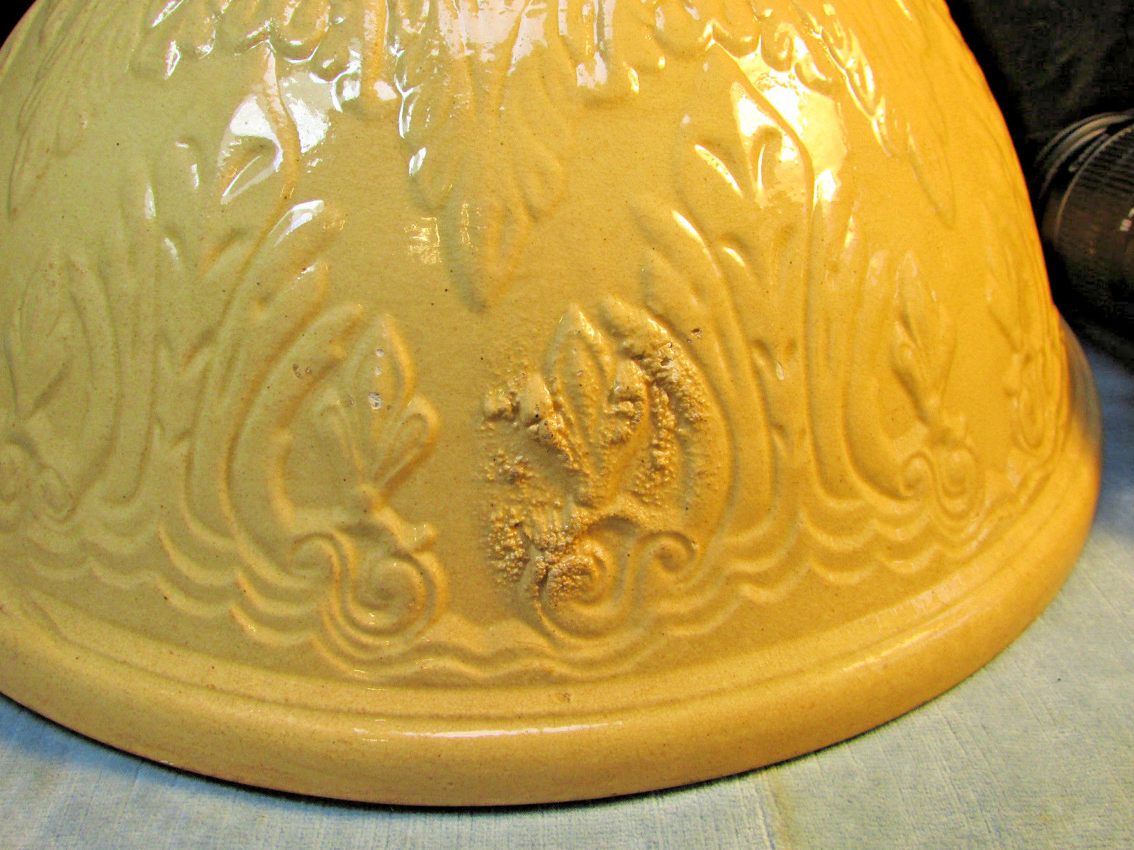 ANTIQUE DECORATED YELLOW WARE MIXING BOWL STAMPED PHILADELPHIA. NR