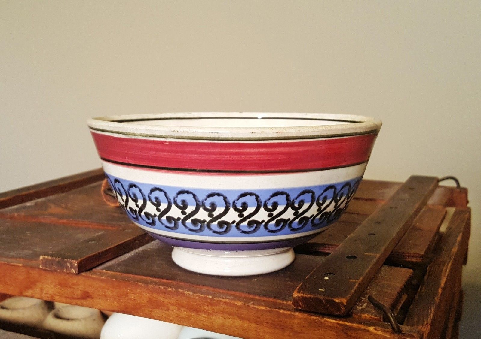 Title (ebay affiliate link): Antique Stick Spatter Spatterware Pottery Spongeware 5-1/2" Footed Bowl