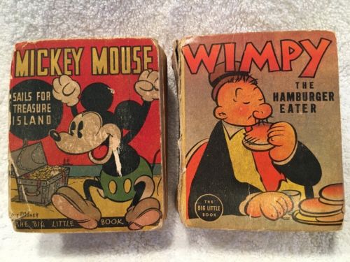 Title (ebay affiliate link): 2 Big Little Book 750 Micky Mouse Treasure Island, 1458 Wimpy Hamburger Eater