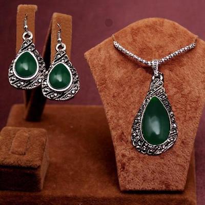 Title (ebay affiliate link): 2PCS Newest antique silver Green Beads Necklace eardrop Jewelry Set Women''s gift