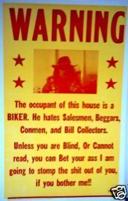 WARNING-BIKER LIVES HERE- MOTORCYCLE HARLEY BIKE POSTER