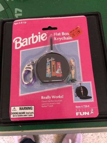 Title (ebay affiliate link): Barbie Doll Hat Box Purse Case Keychain fob backpack clip opens NWT NIP vintage