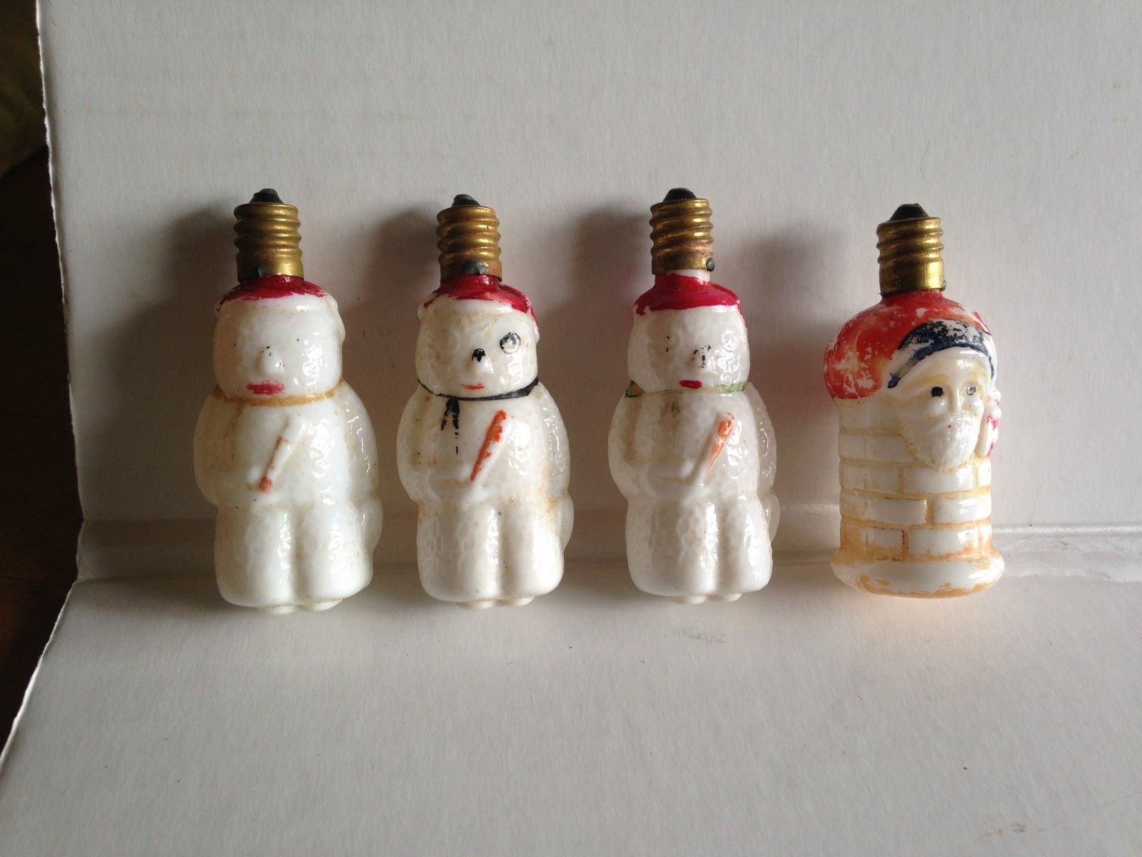 Title (ebay affiliate link): 4 Vintage Milk Glass Figural Christmas Light Bulbs~Santa & 3 Snowman