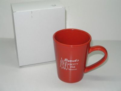 BYOREK'S KNOTTY PINE HAZLETON PA RED COFFEE MUG