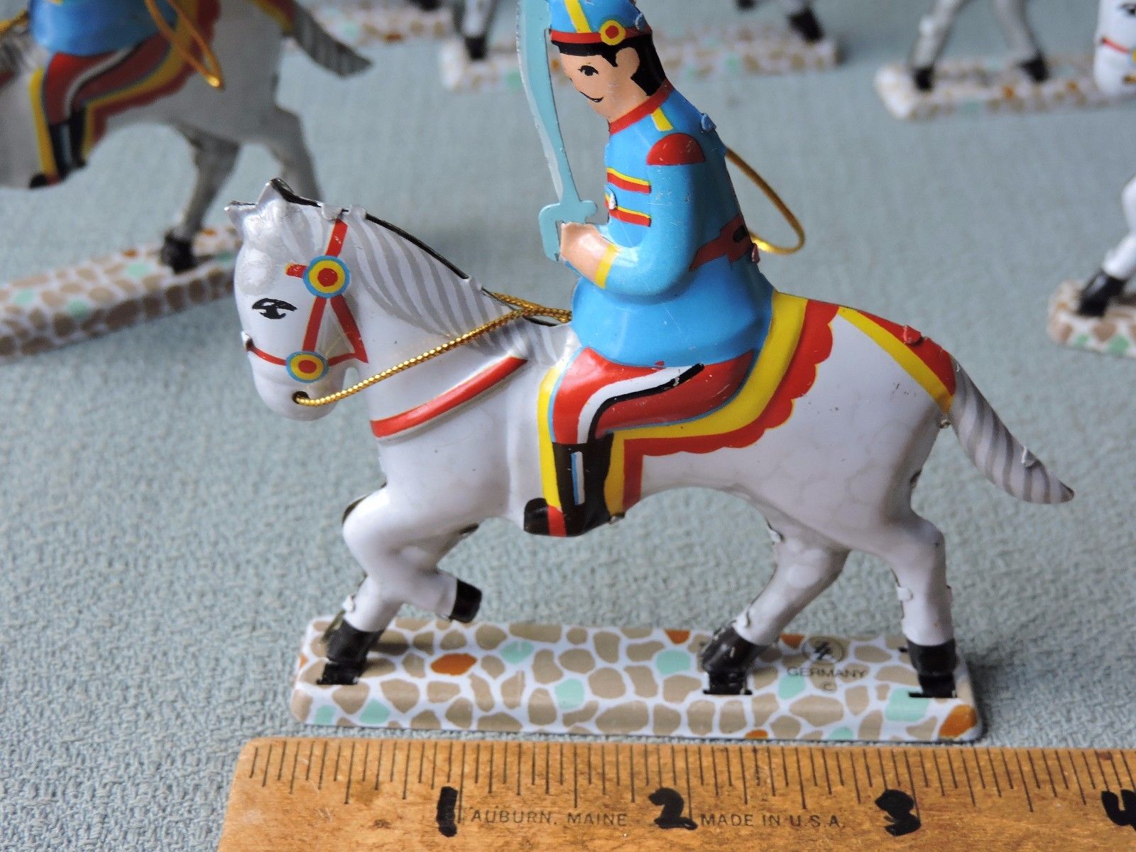 Lot Of 6 Vtg Tin Lithograph German Christmas Ornament 1960''s NOS Soldier Horse