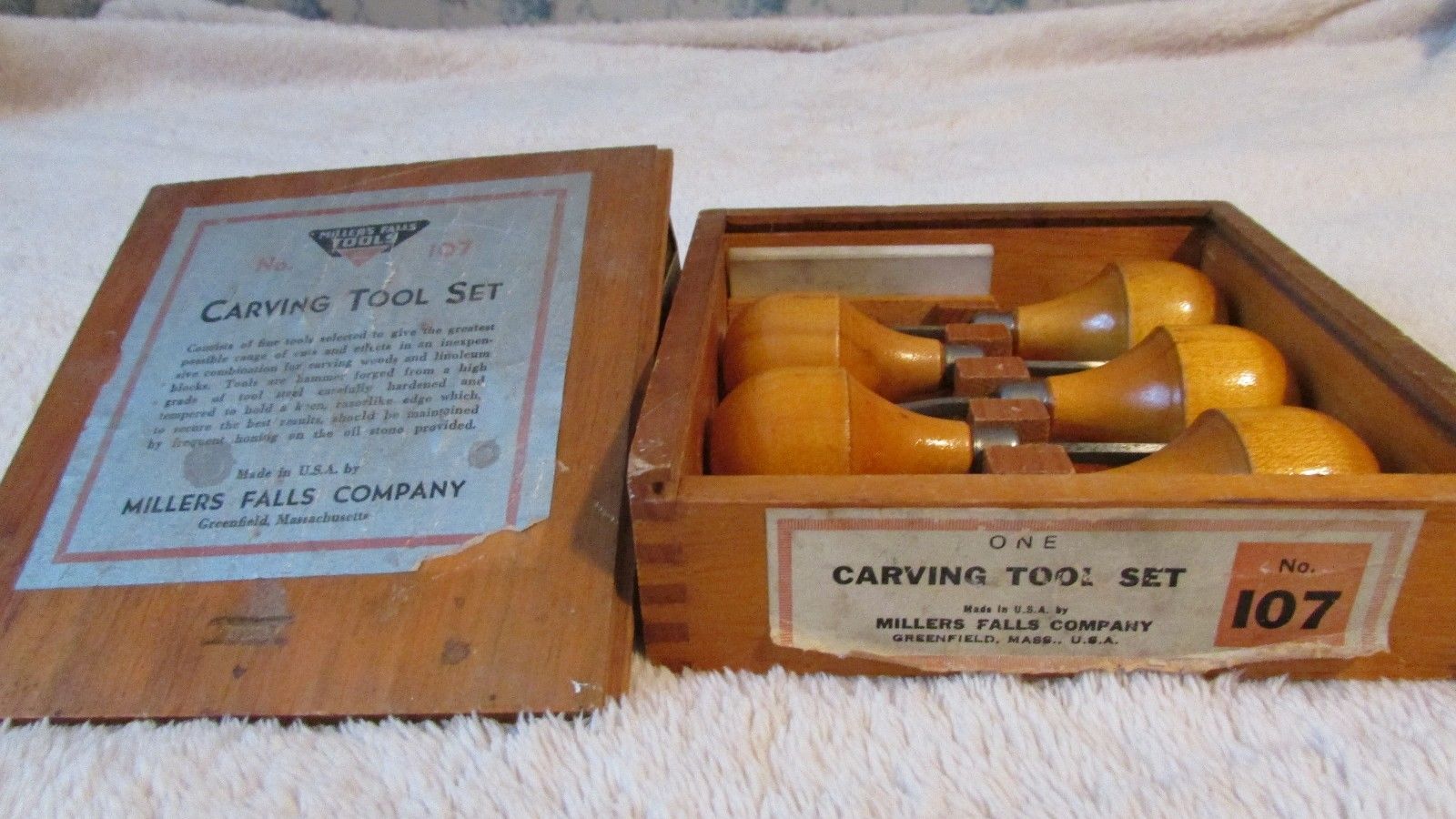 Title (ebay affiliate link): VINTAGE SET OF MILLERS FALLS CARVING SET IN WOODEN BOX
