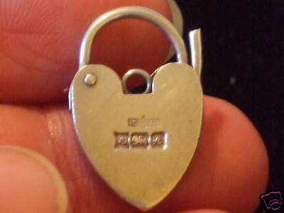 Title (ebay affiliate link): VINTAGE ENGLISH SILVER PADLOCK HEART CLASP CHARM OPENS
