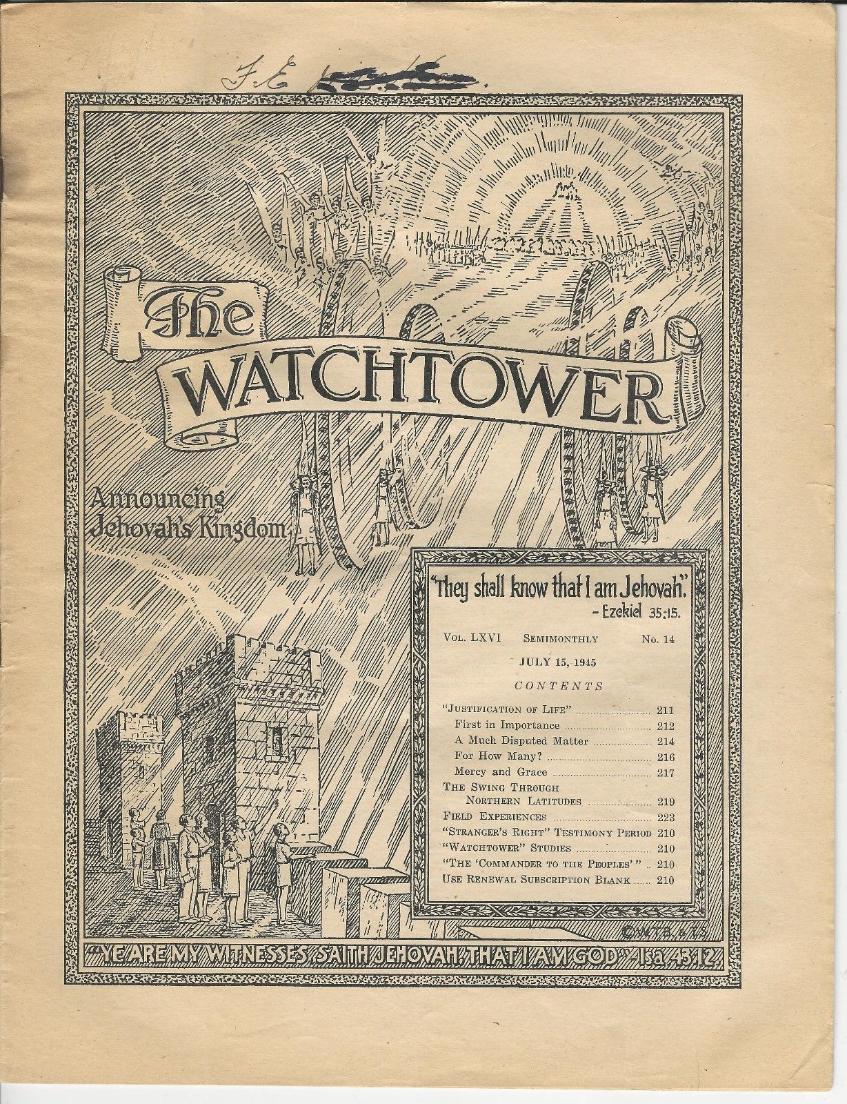 Title (ebay affiliate link): ORIGINAL July 15, 1945 The Watchtower announcing Jehovah''s Kingdom Canadian