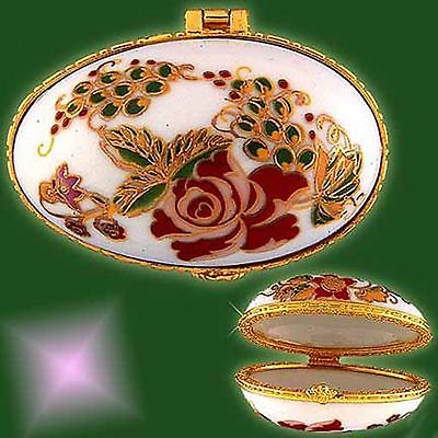 Collectible Porcelain Egg Jewelry Box 3 inches long Gold trim Gift Item Last One