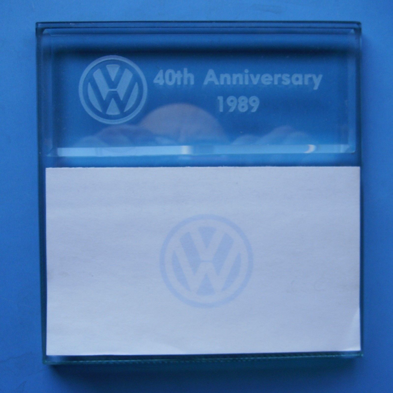 Volkswagen 40th Anniversary 1989 Advertising Glass Paperweight Note Pad w Box