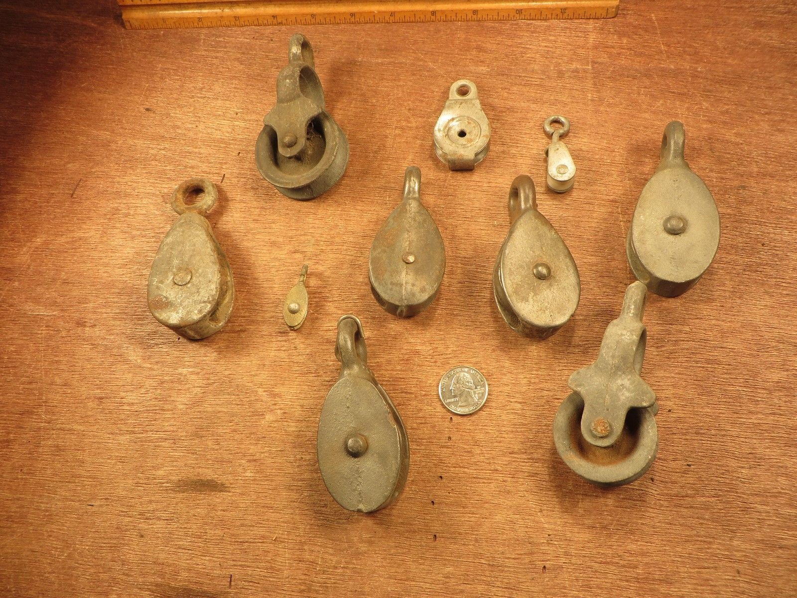 Estate Vintage Lot Of 10 Small Size Assorted Boat ? Block Tackle Pulleys VGC