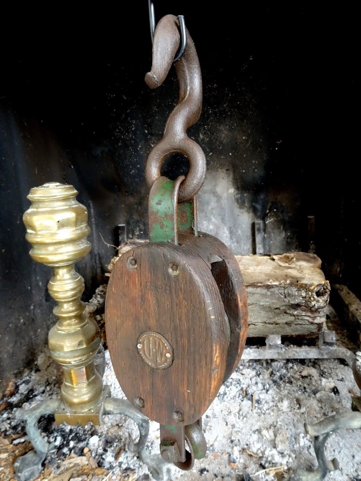 Antique Vintage BARN PULLEY made by U-W 8-PB Maritime Pulley Barn Farm Pulley