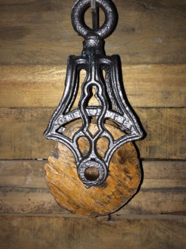 Title (ebay affiliate link): Antique Vintage Cast Iron And Wood Barn Pulley