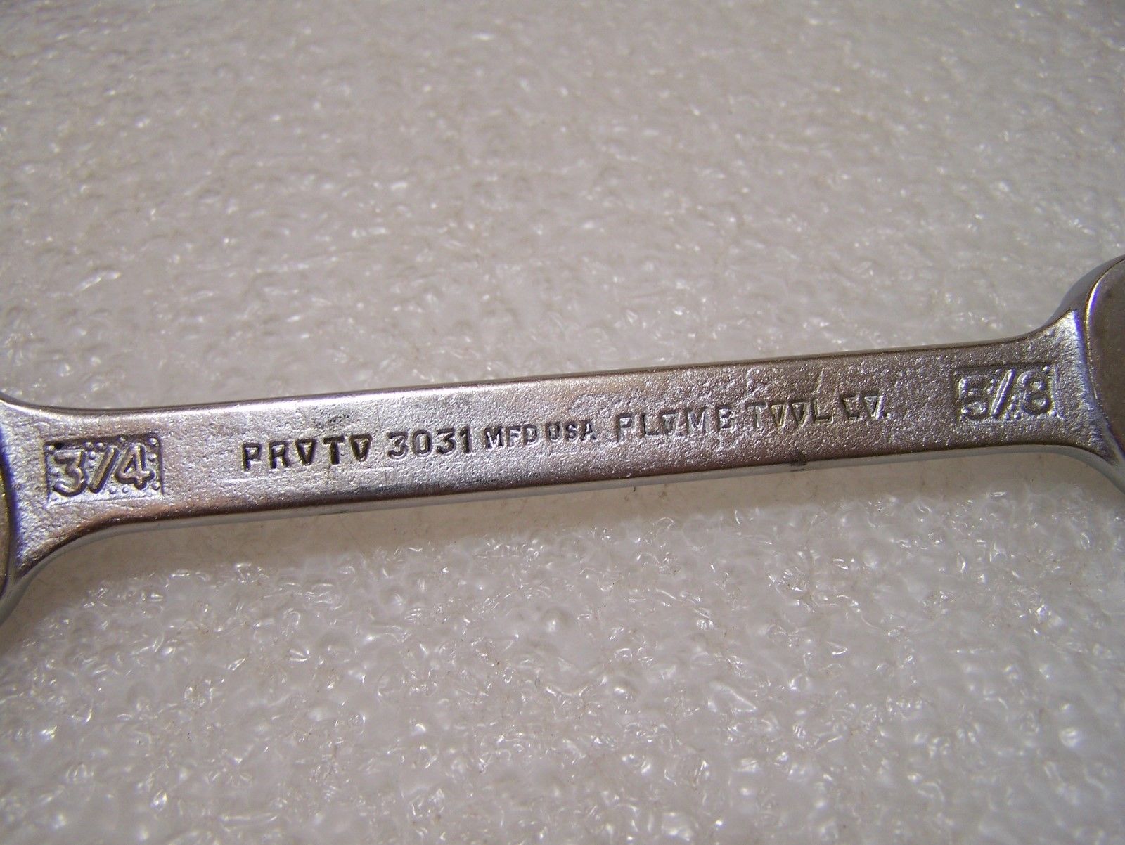Vtg Plomb Proto Dual Marked #3031 Double Open End Wrench Pebble Panels 3/4 5/8