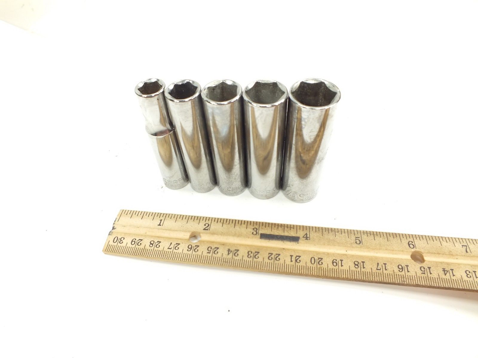 Title (ebay affiliate link): 5 CRAFTSMAN TOOLS 3/8" DRIVE DEEP 6 POINT SOCKET 3/8 to 5/8 - ALL USA MADE