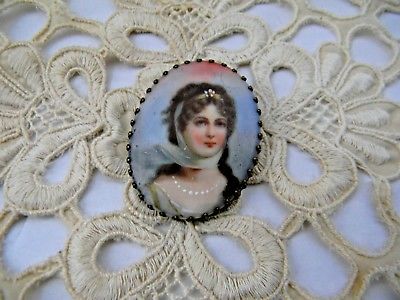 Title (ebay affiliate link): Antique Vintage Victorian Large Hand Painted Porcelain Portrait Cameo Brooch Pin