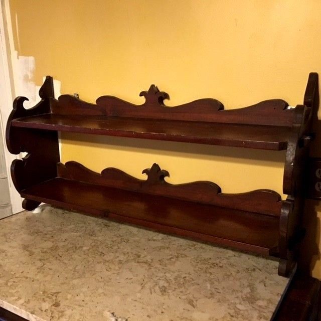 Title (ebay affiliate link): Large Antique Fluer De Lis Vintage Country Store Pine Wooden Wall Hanging Shelf