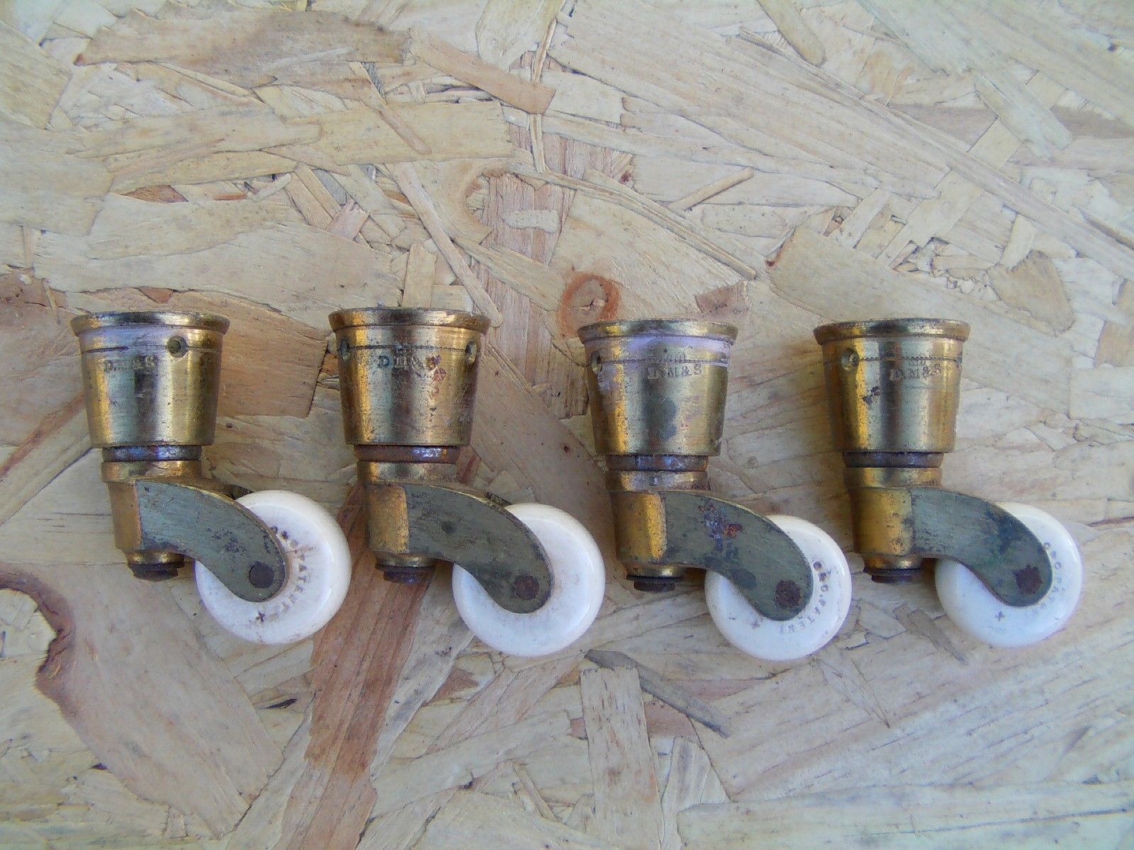Title (ebay affiliate link): Antique Brass Castors x 4 Pottery & Brass Made By D M & S. Furniture Restoration