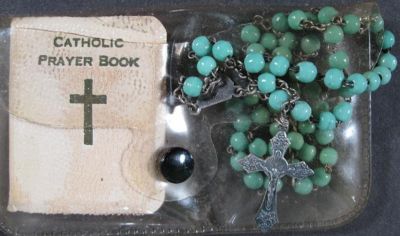 1940’s Vintage Catholic Rosary Blue Milk Glass Beads