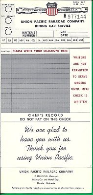 1960''s Union Pacific Railroad Co. Dinning Car Check
