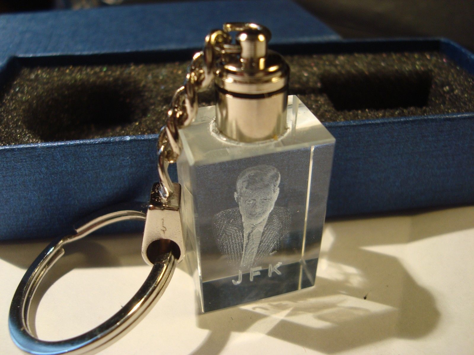Title (ebay affiliate link): Vintage JFK President Kennedy Lucite Hologram Style Keychain in Original Box