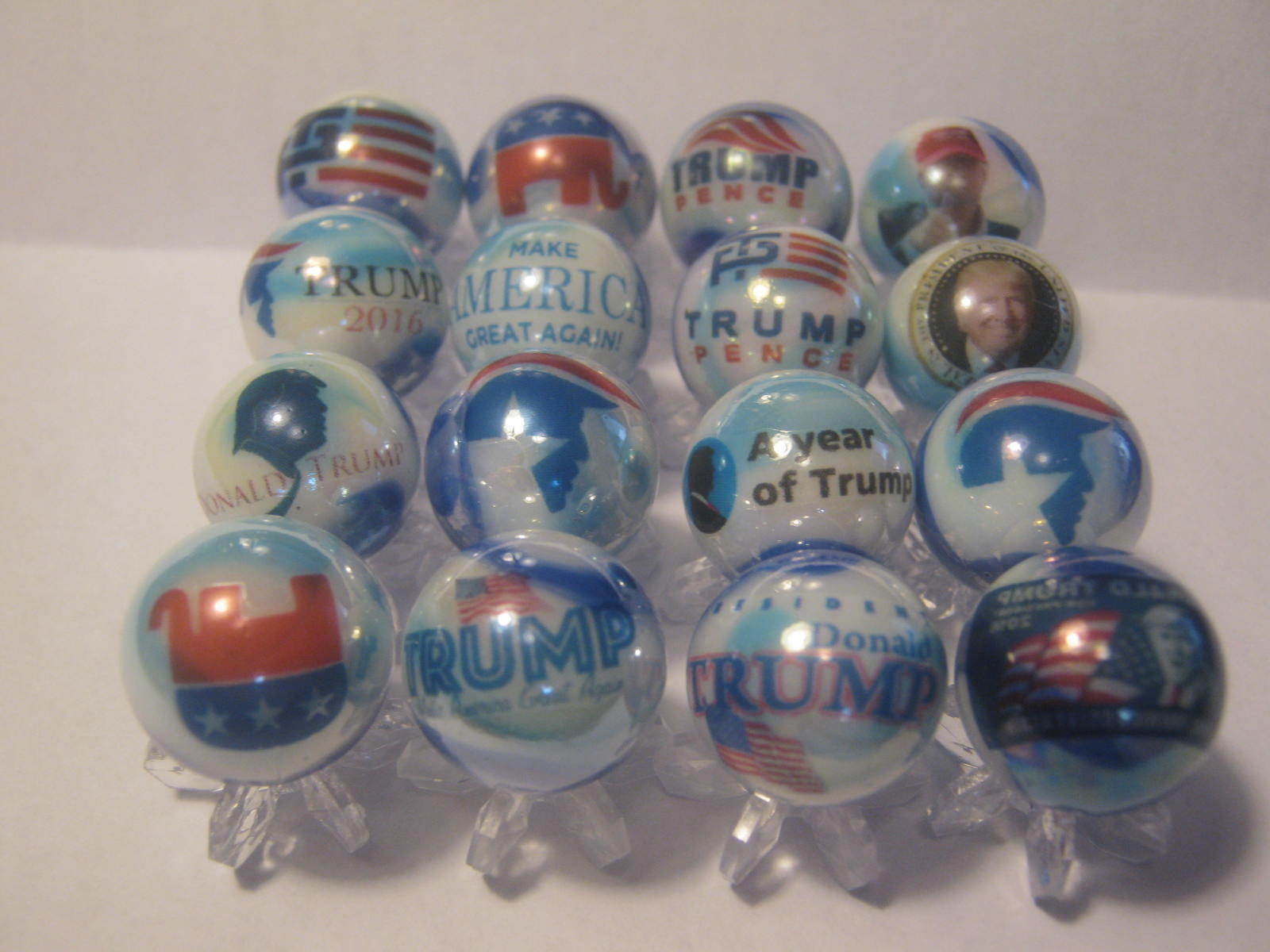 Title (ebay affiliate link): USA President Donald Trump Glass Marbles 5/8 SIZE collection lot + STANDS