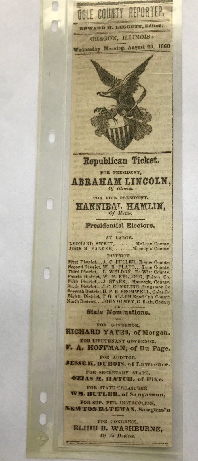Lincoln Hamlin Ballot 1860 w/Presidential Electors, ILL State Nominations