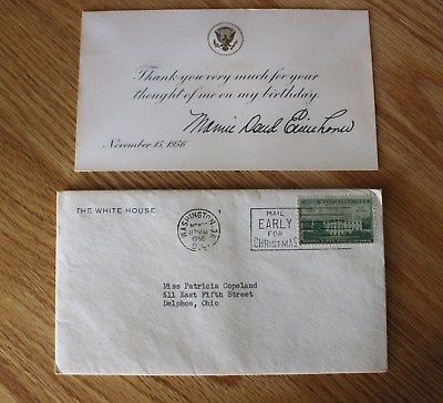 Title (ebay affiliate link): 1956 MAMIE DOUD EISENHOWER BIRTHDAY THANK YOU NOTE / SIGNED / SENT FROM WH