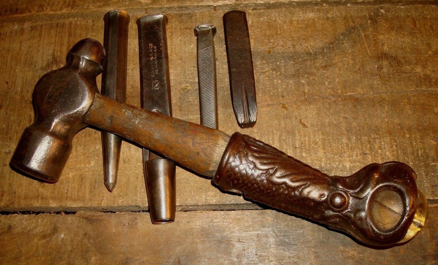 Title (ebay affiliate link): VINTAGE BLACKSMITH HAMMER & CHISEL TOOL LOT LEATHER WORKERS HOLE PUNCH TOOL