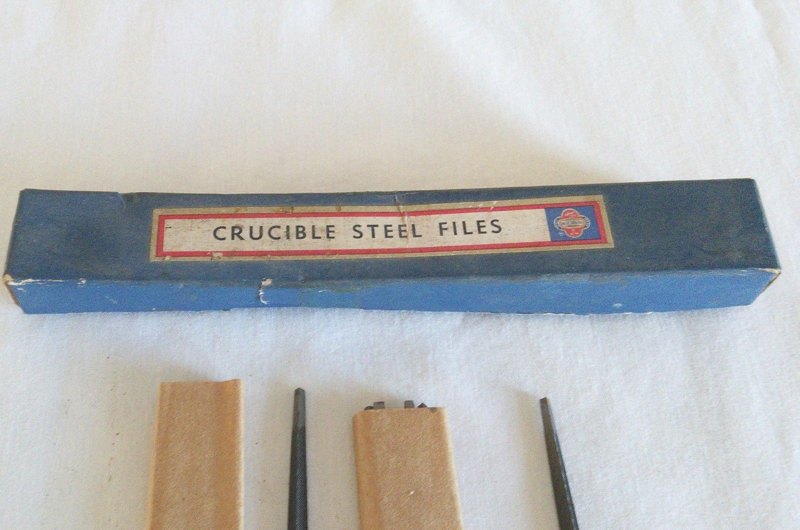 Vintage Lot of 12 Blue Grass Crucible Steel Files in Original Box