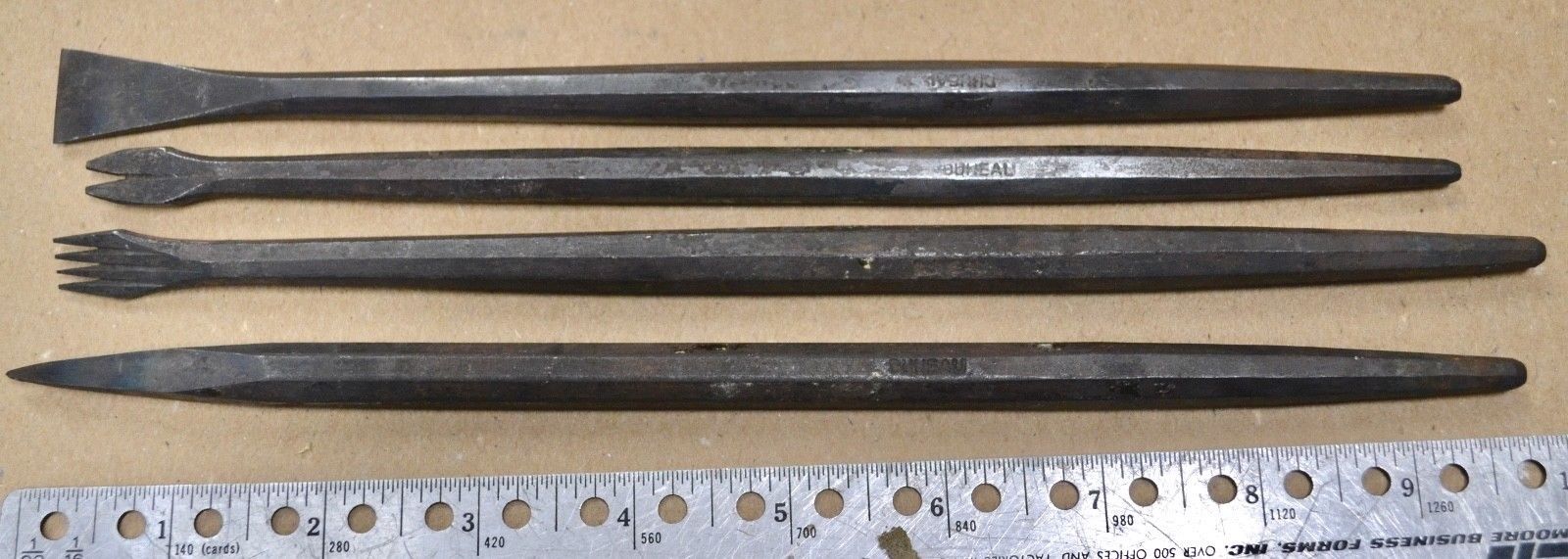 4 Duneau StoneMason Sculptor Tools Fork Ends & Flat Ends