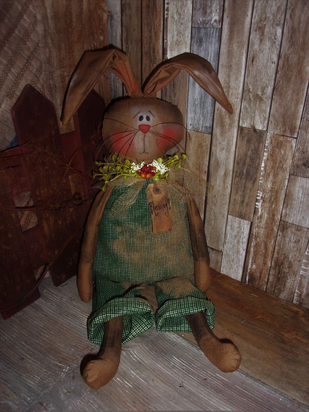 Title (ebay affiliate link): ** Primitive 21in GREEN OVERALL SPRING BUNNY GRUNGY COUNTRY old rusty doll**