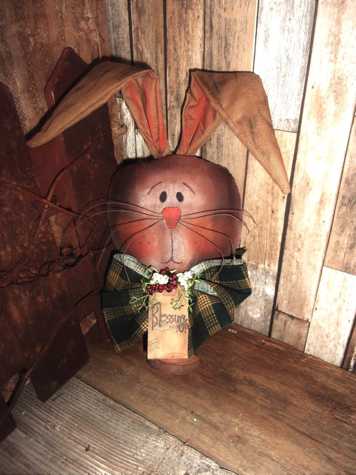 Title (ebay affiliate link): ** Primitive 10x5in BLACK BUNNY HEAD BOBBIN COUNTRY SPRING old rusty doll**