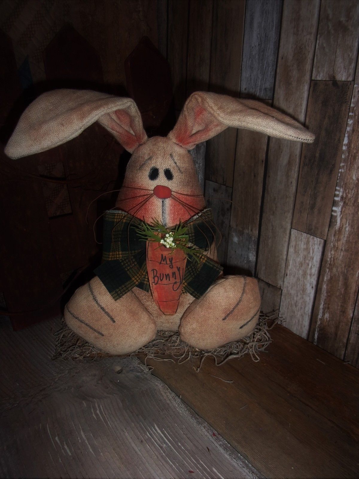 Title (ebay affiliate link): ** Primitive 9x7in SITTING BIG FEET BUNNY ON BASE COUNTRY SPRINGold rusty doll**