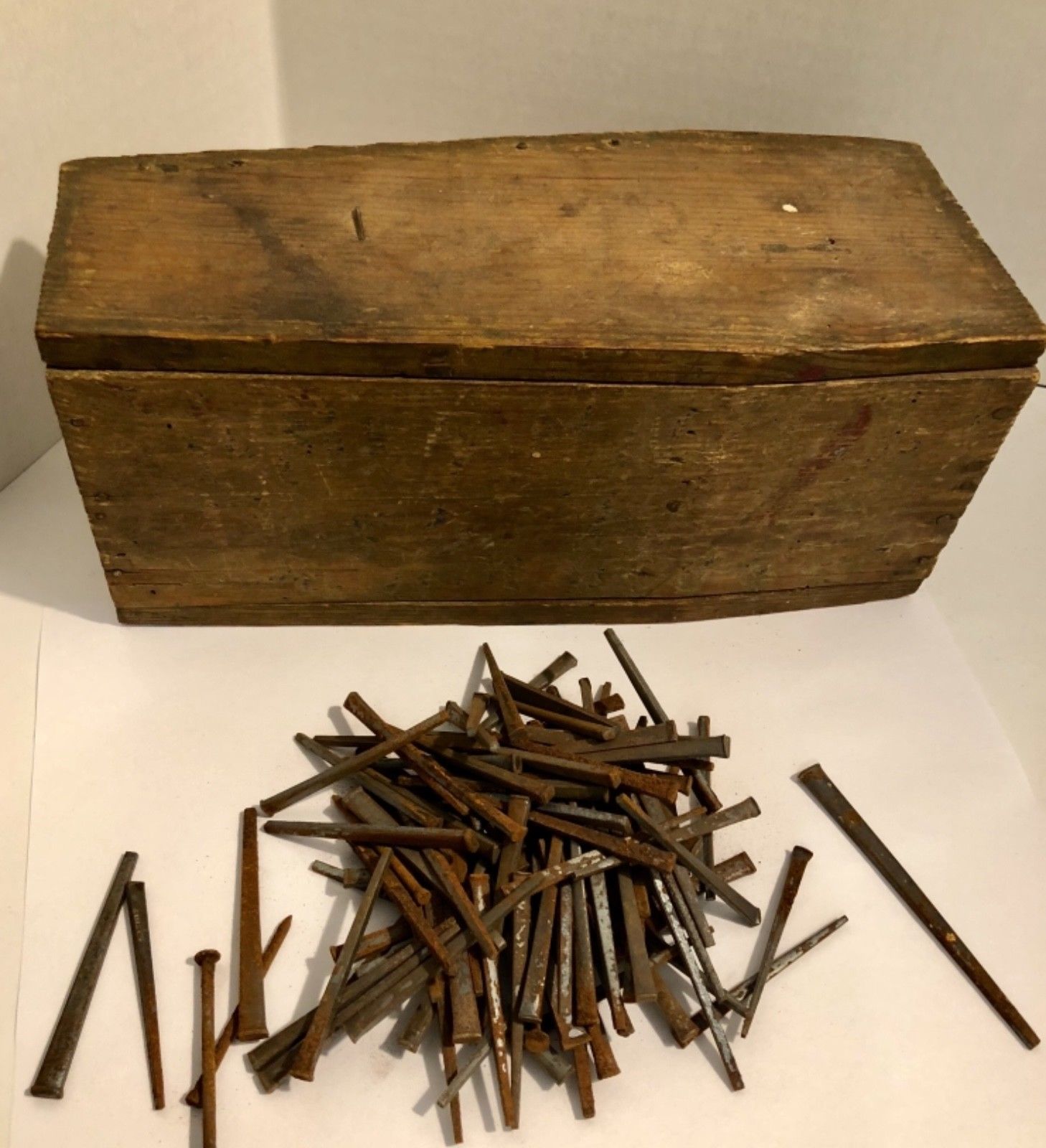 Title (ebay affiliate link): Antique Vtg Handmade Primitive Wood Doll Pet Casket Box wi Square Nails