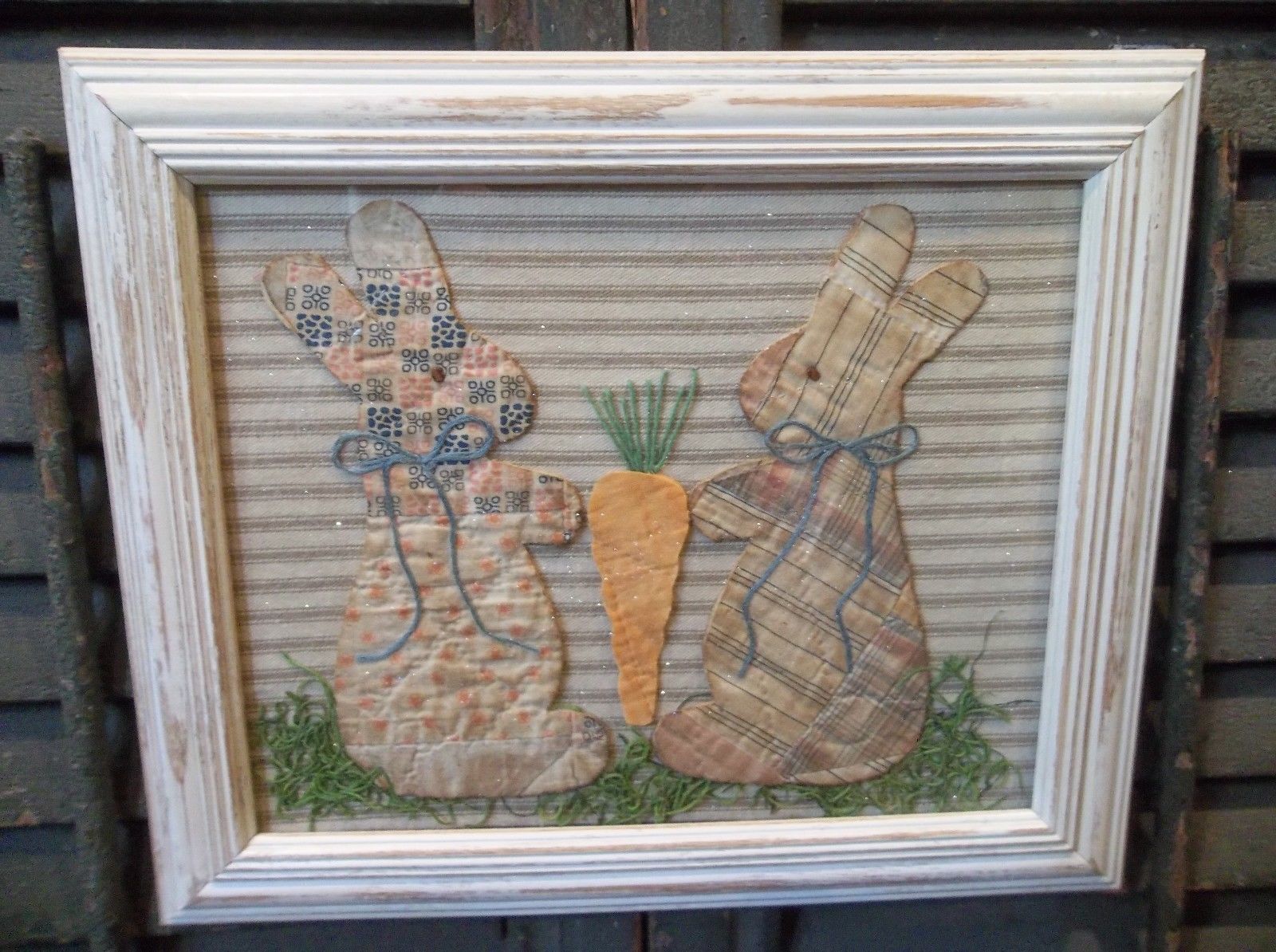 Title (ebay affiliate link): Prim Spring/Easter Decoration - Antique Cutter Quilt Bunnies in Painted Frame