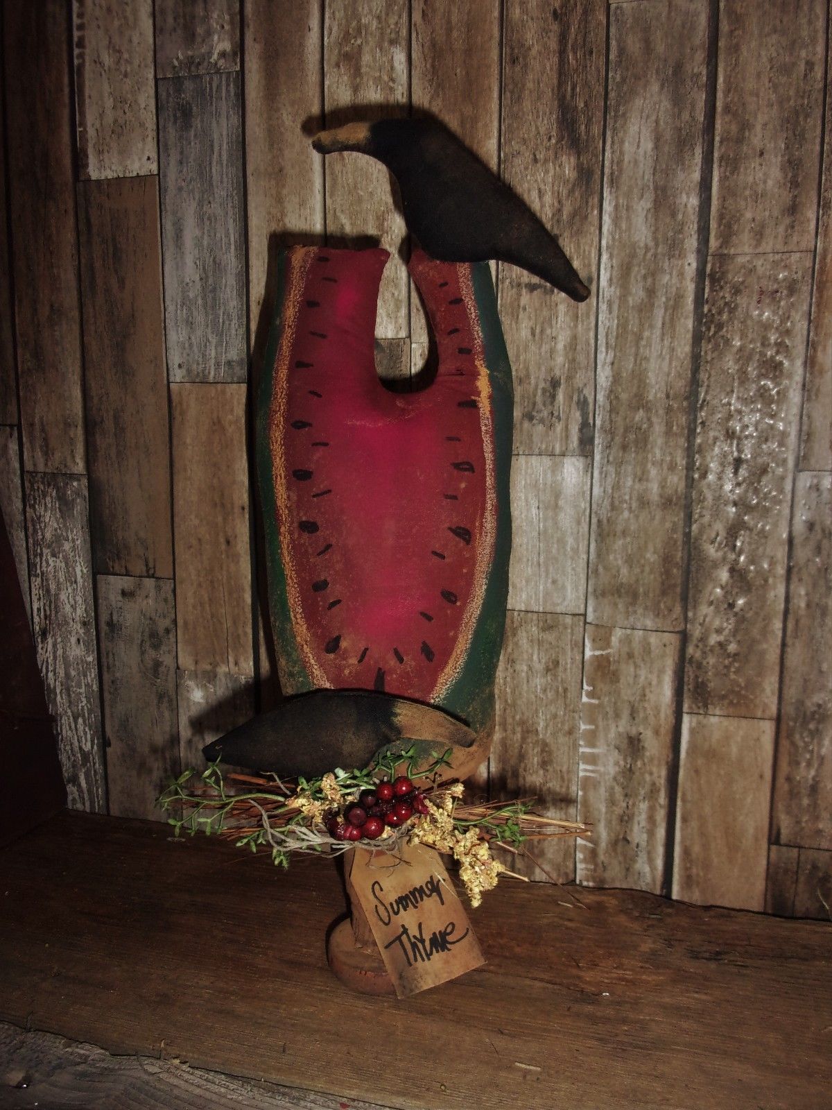 Title (ebay affiliate link): ** Primitive 12in SKINNY TALL WATERMELON BOBBIN W/2CROWS.. old rusty doll**