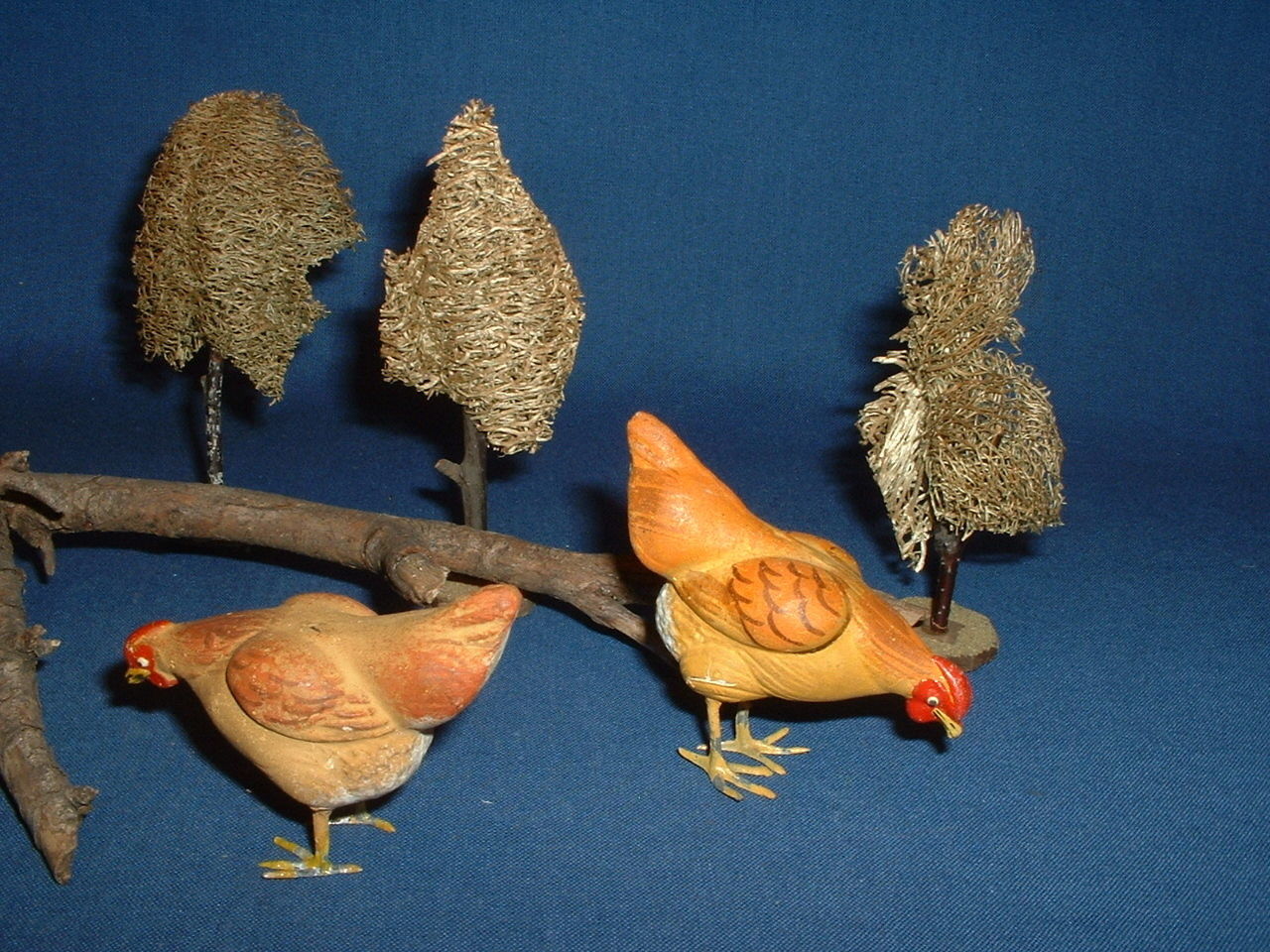 Title (ebay affiliate link): Vintage German Germany Composition Christmas Putz Chickens (2)