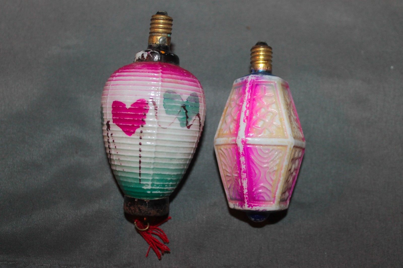 Vntage Pair Milk Glass Screw in Type Japanese Lantern Christmas Light Bulbs