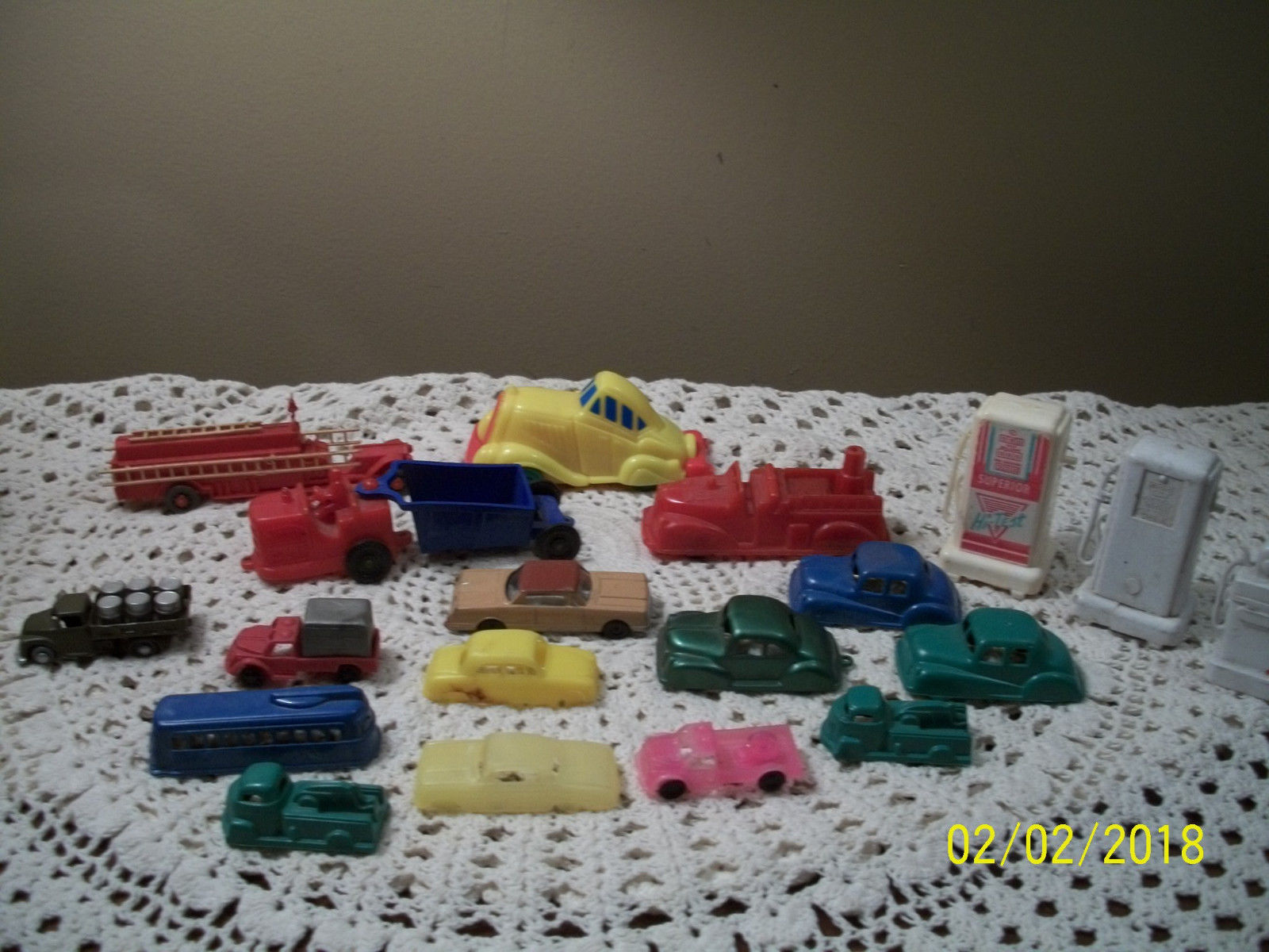 Title (ebay affiliate link): Large Assortment Vintage Plastic Cars Gas Pumps Fire Truck Etc Renwal