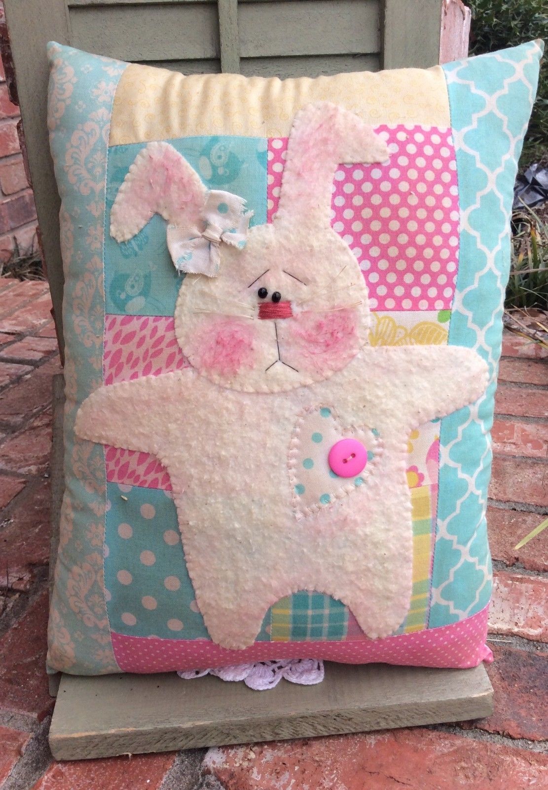 Title (ebay affiliate link): Primitive Easter/Spring Bunny Pillow*Patchwork*multi-color*GracieLouOriginals